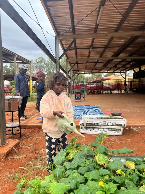 While the red sands of Kintore might suggest difficulty in agriculture, primary school students at the local school carried out a defiant mission against the odds, and now as a result have a beautiful garden they are all incredibly proud of.