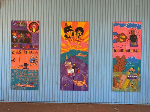 It was here that we also hard launched a book first dreamt up the previous year, Jirrama Yimi-Jarraku, created by the students for the students. Illustrations from the book were chosen by the students and turned into murals that the community school now has on display.